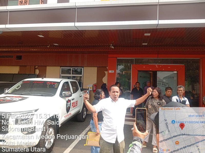 MEDAN – Suasana mencekam menyelimuti halaman Polrestabes Medan di Jalan HM Said, Kota Medan, Kamis (5/2/2026) siang, ketika tiga orang yang merupakan keluarga tersangka kasus dugaan penganiayaan pelaku pencurian toko ponsel meluapkan kemarahannya dengan berteriak-teriak di depan ruangan Satuan Reserse Kriminal, memprotes keras penetapan tersangka terhadap anggota keluarga mereka serta mengklaim tidak diperbolehkan membesuk selama tiga hari berturut-turut.