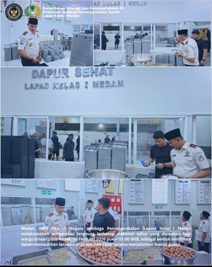 BaraNews.Com -Medan, Kepala Lembaga Pemasyarakatan (Lapas) Kelas I Medan melaksanakan pengecekan langsung terhadap makanan sahur yang disiapkan bagi warga binaan pada Kamis, 19 Februari 2026 pukul 01.00 WIB, sebagai bentuk komitmen dalam memastikan terpenuhinya hak-hak dasar selama menjalankan ibadah puasa.